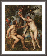 Eve accepts the forbidden fruit from the hands of the devil, who is half child and half serpent. Sitting on the roots of the tree of Good and Bad, Adam tries to stop her. This is a copy of a painting on the same subject that Titian made for Felipe II (P00429). Rubens saw it during his trip to Spain in 1628 and 1629. In keeping with his own concept of painting, he made significant changes with respect to the original, including the use of a more intense palette.