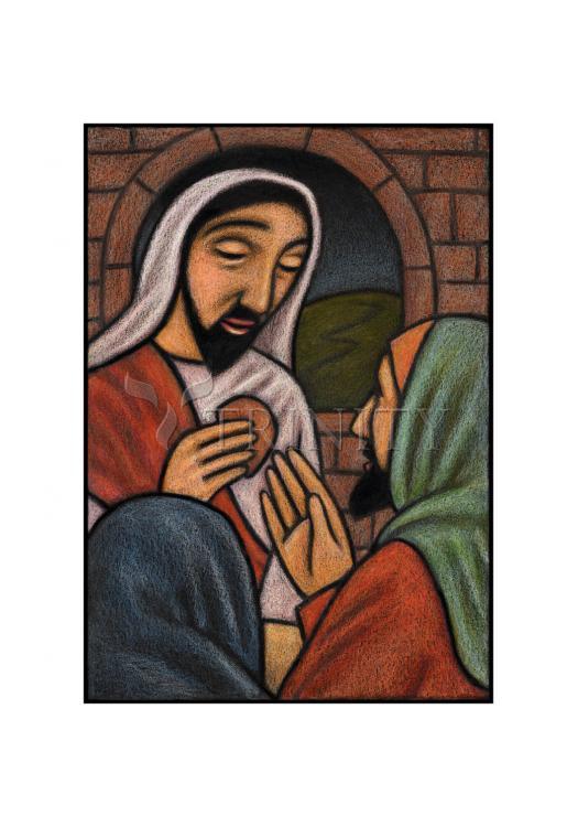 Our holy cards are custom printed per order by our local printing partners here in Colorado. These beautiful holy cards are available in two sizes, 2¾” x 4” and 3½” x 5”. Your choice for the back of the holy cards: Artist's Narrative, Title Only, Blank or Custom Text. There is no additional cost for custom text.