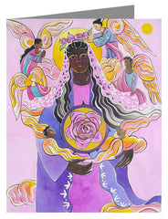 Standard 4½” x 5½” note card displays artwork on front. Your custom text is available on inside of cards. Includes envelope.