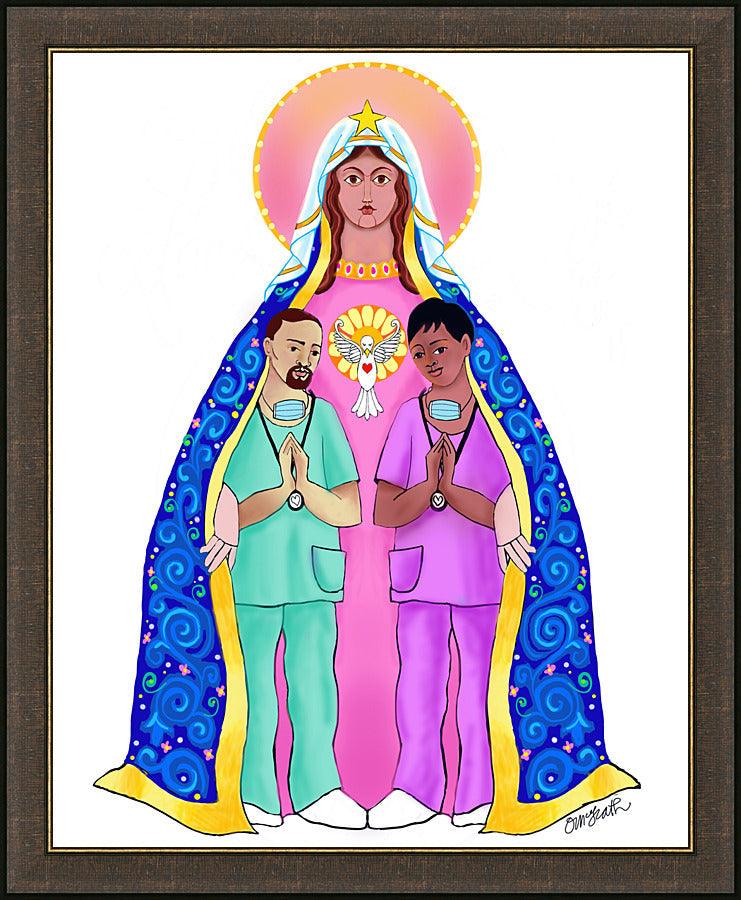 Wall Frame Espresso - Our Lady of Refuge with Health Care Workers by M. McGrath