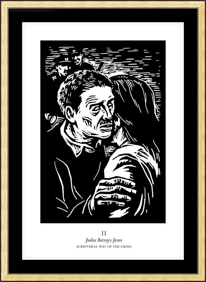 Wall Frame Gold - Scriptural Stations of the Cross 02 - Judas Betrays Jesus by J. Lonneman