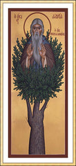 Saint David was born in northern Mesopotamia, in an area now known as Iraq. He traveled to Thessaloniki as a young man to become a monk at the Monastery of Sts. Theodore and Mercurius. After some time, he chose to climb a large almond tree on the monastery grounds, where he spent three years learning self-discipline, enduring the elements, day and night, suffering greatly in bad weather.