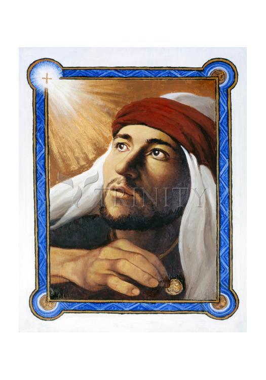 Our holy cards are custom printed per order by our local printing partners here in Colorado. These beautiful holy cards are available in two sizes, 2¾” x 4” and 3½” x 5”. Your choice for the back of the holy cards: Artist's Narrative, Title Only, Blank or Custom Text. There is no additional cost for custom text.