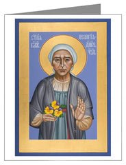Our holy cards are custom printed per order by our local printing partners here in Colorado. These beautiful holy cards are available in two sizes, 2¾” x 4” and 3½” x 5”. Your choice for the back of the holy cards: Artist's Narrative, Title Only, Blank or Custom Text. There is no additional cost for custom text.