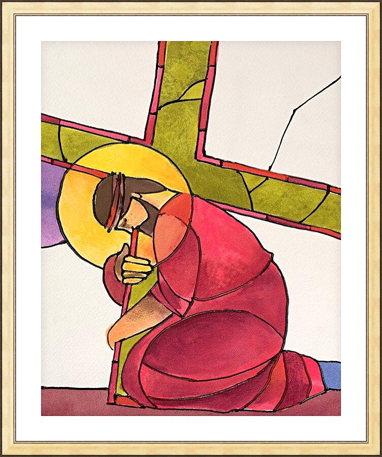 Wall Frame Gold - Stations of the Cross - 3 Jesus Falls the First Time by M. McGrath