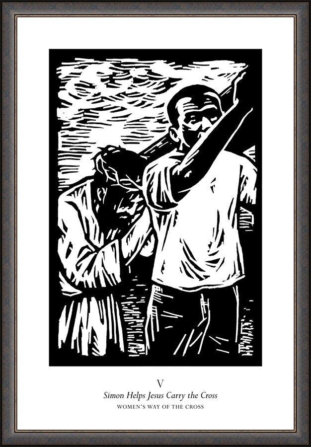 Wall Frame Espresso - Women's Stations of the Cross 05 - Simon Helps Jesus Carry the Cross by J. Lonneman