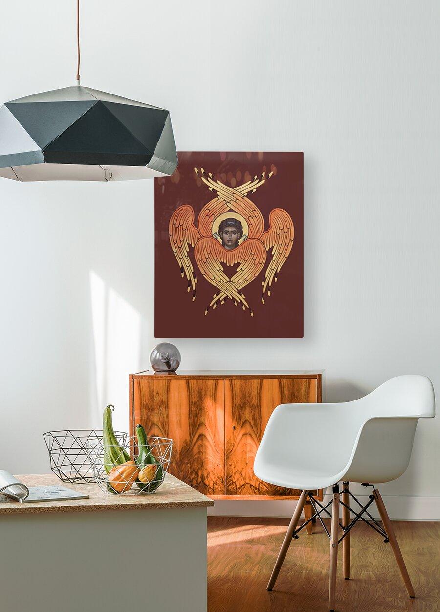 According to the ancient Christian tradition, there are nine ranks of angels. The word "angel" comes from the Greek word for "messenger", and most angels either watch over human beings and the rest of creation or bring human beings messages from God. The Cherubim and Seraphim are different. As the highest ranks of angels, they ceaselessly praise the Holy Trinity. The Seraphim are depicted with six wings, based on descriptions in the Bible, such as Isaiah 8: 1-6.