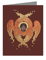Standard 4½” x 5½” note card displays artwork on front. Your custom text is available on inside of cards. Includes envelope.