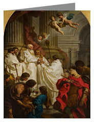 Standard 4½” x 5½” note card displays artwork on front. Your custom text is available on inside of cards. Includes envelope.