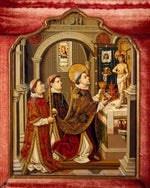 This painting depicts the popular legend in which Gregory once overheard an onlooker express doubts about Christ’s actual presence at the altar during mass.