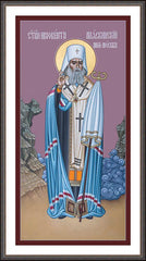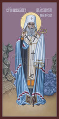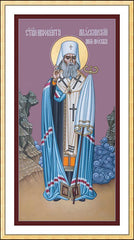 St. Innocent began his ecclesiastical career as a married priest in Siberia. In 1824 he and his family were sent to the Aleutian Islands, where he worked as a missionary among the native peoples. He baptized thousands of Alaskan natives, created alphabets for their languages, and built churches and schools. When his wife died in 1840, he became a monk and was consecrated the first bishop of eastern Siberia, the Aleutian Islands, and Alaska.