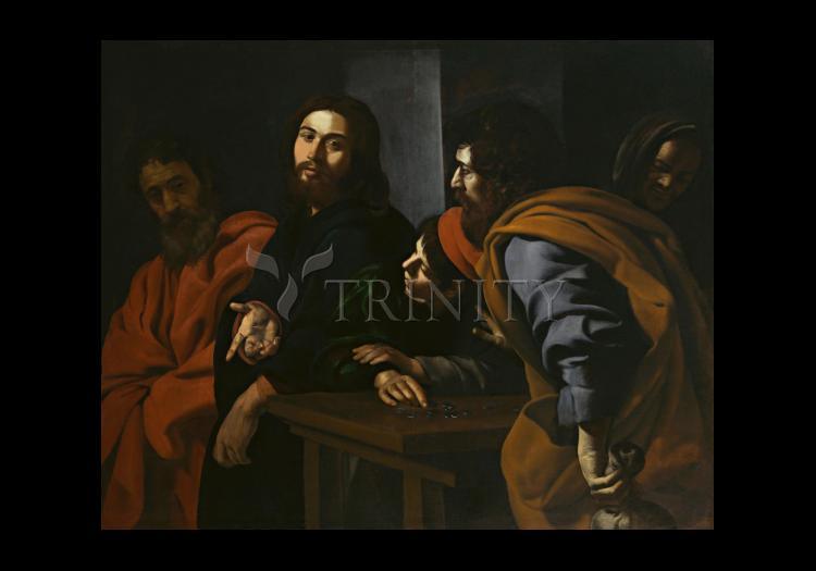 One of the outstanding figures of Neapolitan painting, Caracciolo was deeply influenced by Caravaggio, who worked in Naples in 1606–7 and again in 1610. The artist shows the moment when Jesus asks Matthew, an avaricious tax collector, to renounce his worldly possessions and follow Him (Matthew 9:9). Jesus’s gaze and outward gesture present the viewer with the same quandary as Matthew's: whether to embrace Christ’s invitation or the money bag at the edge of the canvas.