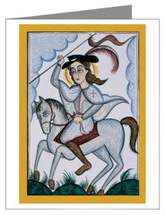 Standard 4½” x 5½” note card displays artwork on front. Your custom text is available on inside of cards. Includes envelope.