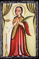 Our holy cards are custom printed per order by our local printing partners here in Colorado. These beautiful holy cards are available in two sizes, 2¾” x 4” and 3½” x 5”. Your choice for the back of the holy cards: Artist's Narrative, Title Only, Blank or Custom Text. There is no additional cost for custom text.