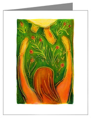 Standard 4½” x 5½” note card displays artwork on front. Your custom text is available on inside of cards. Includes envelope.