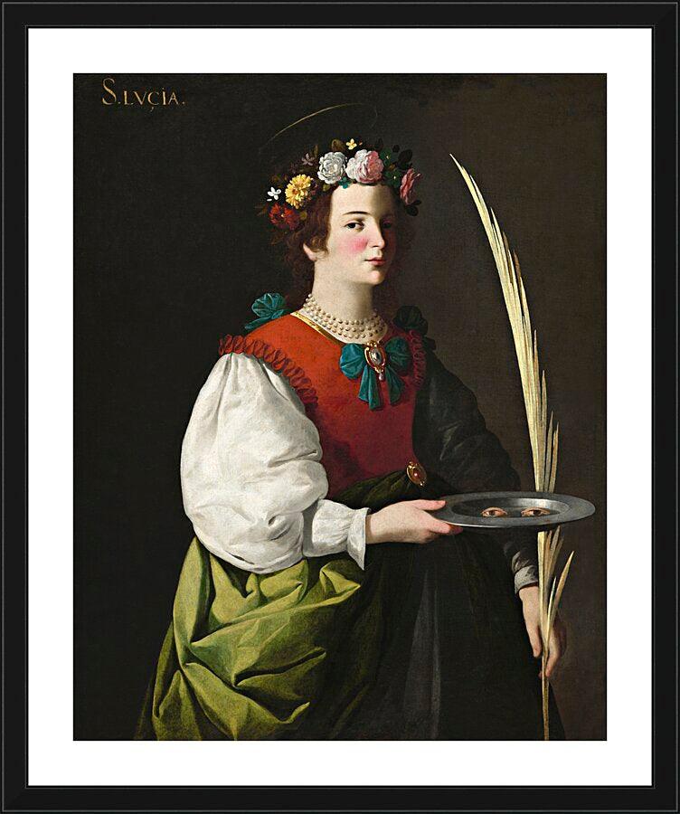 Few images of saints show women as gorgeously attired as Francisco de Zurbarán's. His Saint Lucy portrays the young martyr as a contemporary woman of Seville. Bejeweled and carefully coiffed, she presents her startling attribute, a pair of naturalistically painted eyeballs on a pewter dish.