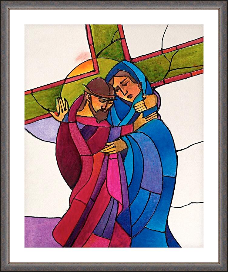 Wall Frame Espresso - Stations of the Cross - 4 Jesus Meets His Sorrowful Mother by M. McGrath