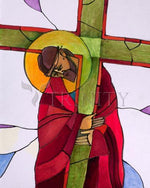 Jesus' journey is at times brutal. He has entered into the terrible experiences of rejection and injustice. He has been whipped and beaten. His face shows the signs of his solidarity with all who have ever suffered injustice and vile, abusive treatment. He encounters a compassionate, loving disciple who wipes the vulgar spit and mocking blood from his face. On her veil, she discovers the image of his face - his gift to her.