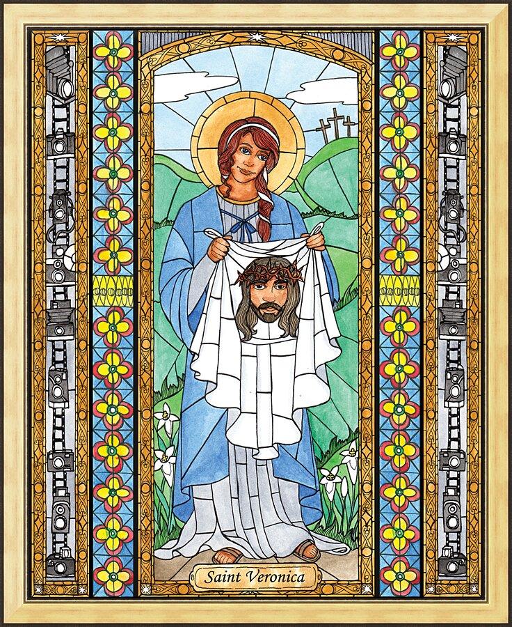 Saint Veronica's story is not recorded in the Bible, but it has been passed along since the beginning of Christianity. It is even one of the Stations of the Cross. The story is of a young woman who stood at the edge of the path as Jesus carried His cross. She was overcome with pity when she saw Jesus suffering, struggling to carry the heavy weight with His tortured and broken body.