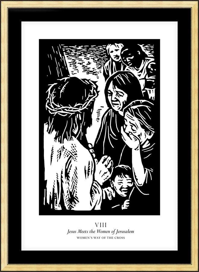 Wall Frame Gold - Women's Stations of the Cross 08 - Jesus Meets the Women of Jerusalem by J. Lonneman