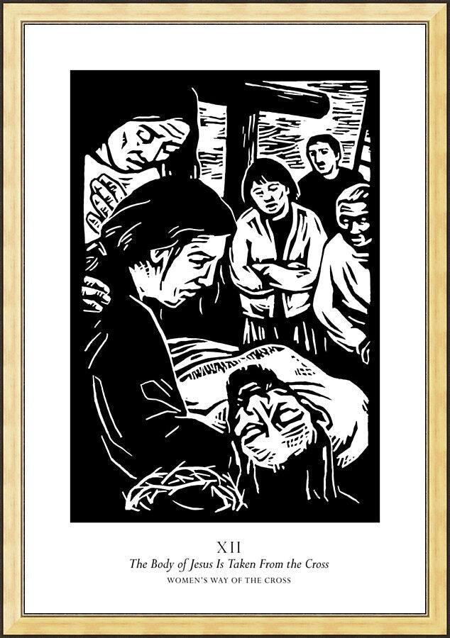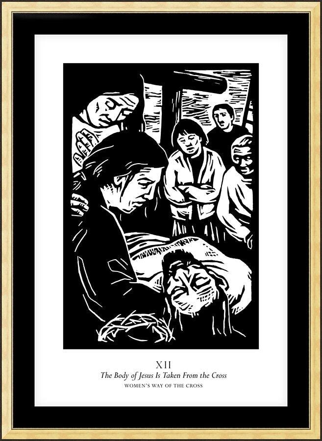 Wall Frame Gold - Women's Stations of the Cross 12 - The Body of Jesus is Taken From the Cross by J. Lonneman