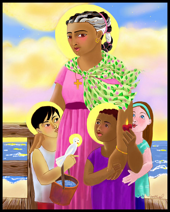 Our holy cards are custom printed per order by our local printing partners here in Colorado. These beautiful holy cards are available in two sizes, 2¾” x 4” and 3½” x 5”. Your choice for the back of the holy cards: Artist's Narrative, Title Only, Blank or Custom Text. There is no additional cost for custom text.